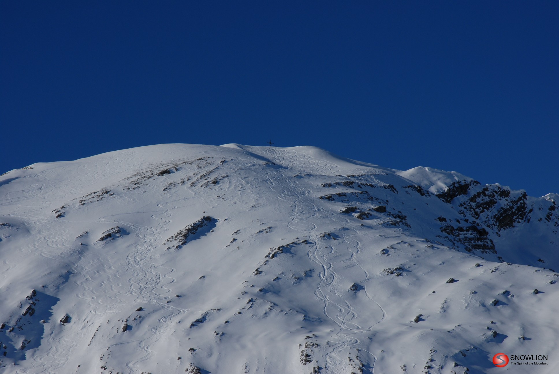 The ascent over the Stierlochjoch is considerably longer in distance, but can be shortened by using the Madloch lift and running through the Roggalmulde. From the Zugerberg lift valley station a long-distance hiking trail leads straight down to the Stierlochbach valley (Bach: german word for creek). Follow the trail until you get to the Stierlochalpe (which, however, might be covered completely by snow – Alpe: german word for mountain pasture), from this point on keep a little to the left and the way will take you steeper uphill, until you reach the Stierlochjoch (Joch: german word for pass). Now, you move to the northwest on the very steep slopes of the lower Spullerschafberg towards a saddle, where you turn right, cross the northern slope of the Spullerschafberg and tackle the last ascent to the summit.