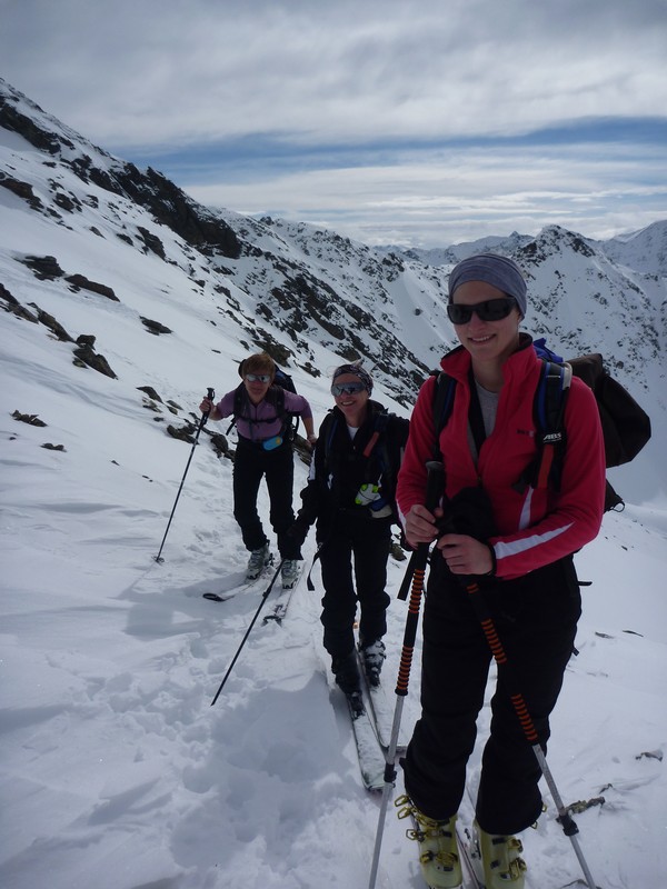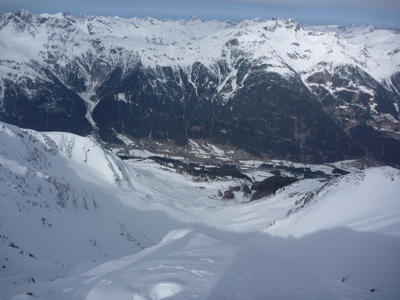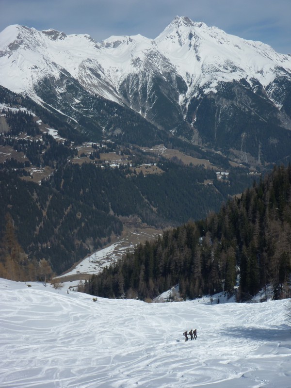 Ascent: From the mountain station Riffelbahn 2 go to the right side towards the north face of the Hinteren Rendl . Cross underneath the first rocks over a flat part to the right side. Now it’s time to put the skins on, cross the first steep scarp over to the left side. Go a bit further across a flat part, turn to the left at first, then start to cross to the right side over the whole slope. After another kickturn to the left you are just a stone's throw away from the saddle. Cross the back of the saddle over easy terrain until you reach the ski storage place. The Hochkar summit is rather exposed but really easy to reach by foot and offers a beautiful view over the Hohen Riffler and the Malfontal.