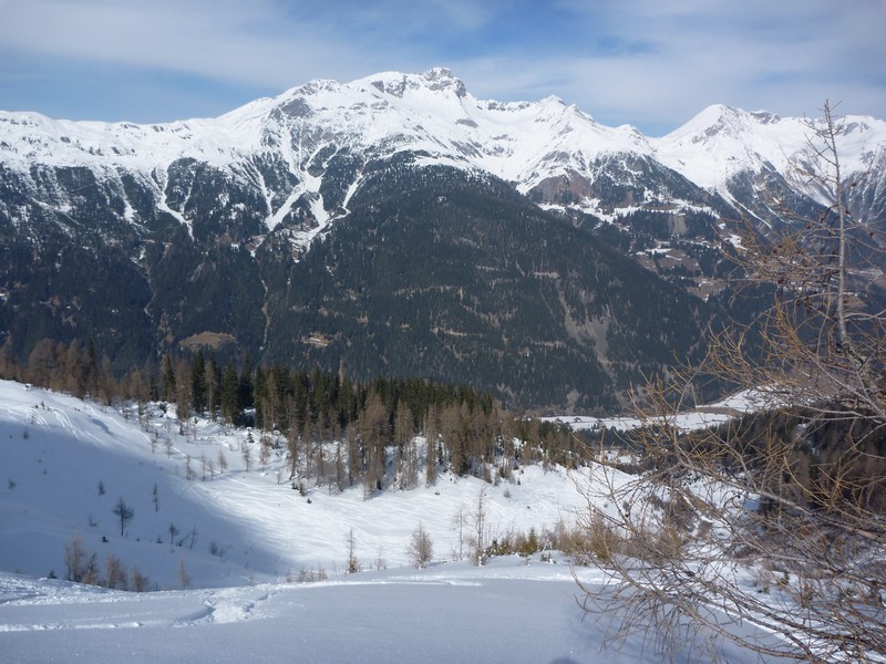 The best and most beautiful descent is down the northern slope. From the ski storage place ski in north-easterly direction aprox. 300 metres, until you reach the lakeside. Now turn right and in a few steps you'll get to the shoulder. The entry to the slope is very steep, therefore it is only recommendable for professional skiers and on days with safe snow conditions. Enter the first bits of the slope and start to descend in a straight line until you get to the tree line. Right under this line you will get to the Forstweg (Weg; german word for path). Follow this path to the left (it is possible to take a shortcut through the forest) until you get to the main road at St. Jakobs, close to a M-Preis supermarket. Here you will find the bus stop.