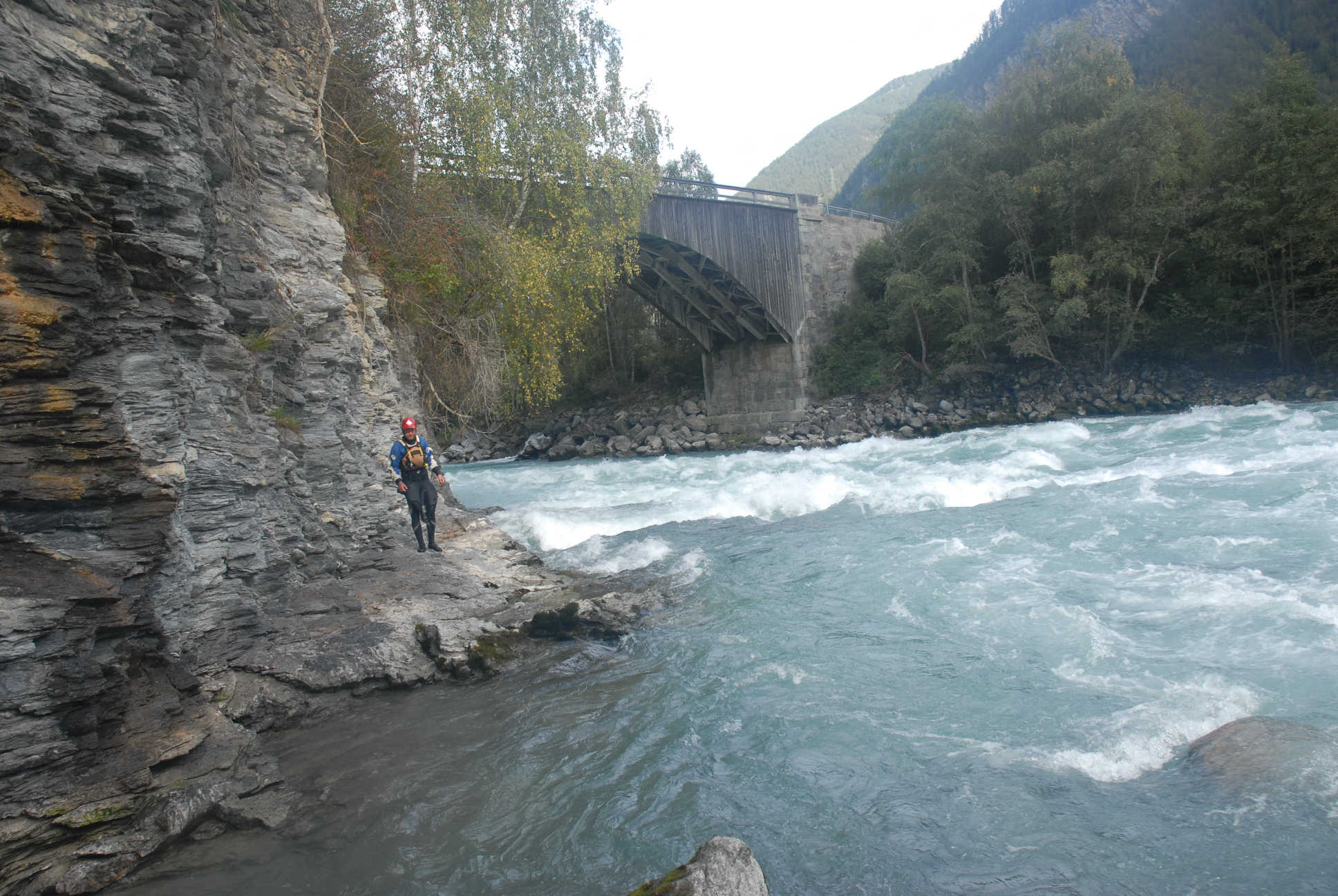 Gleich nach der Strassenbrücke nehmen die Schwierigkeiten rasch zu bis zur Holzbrücke (WW IV). Dannach wird es dann schnell wieder einfacher (WW II).