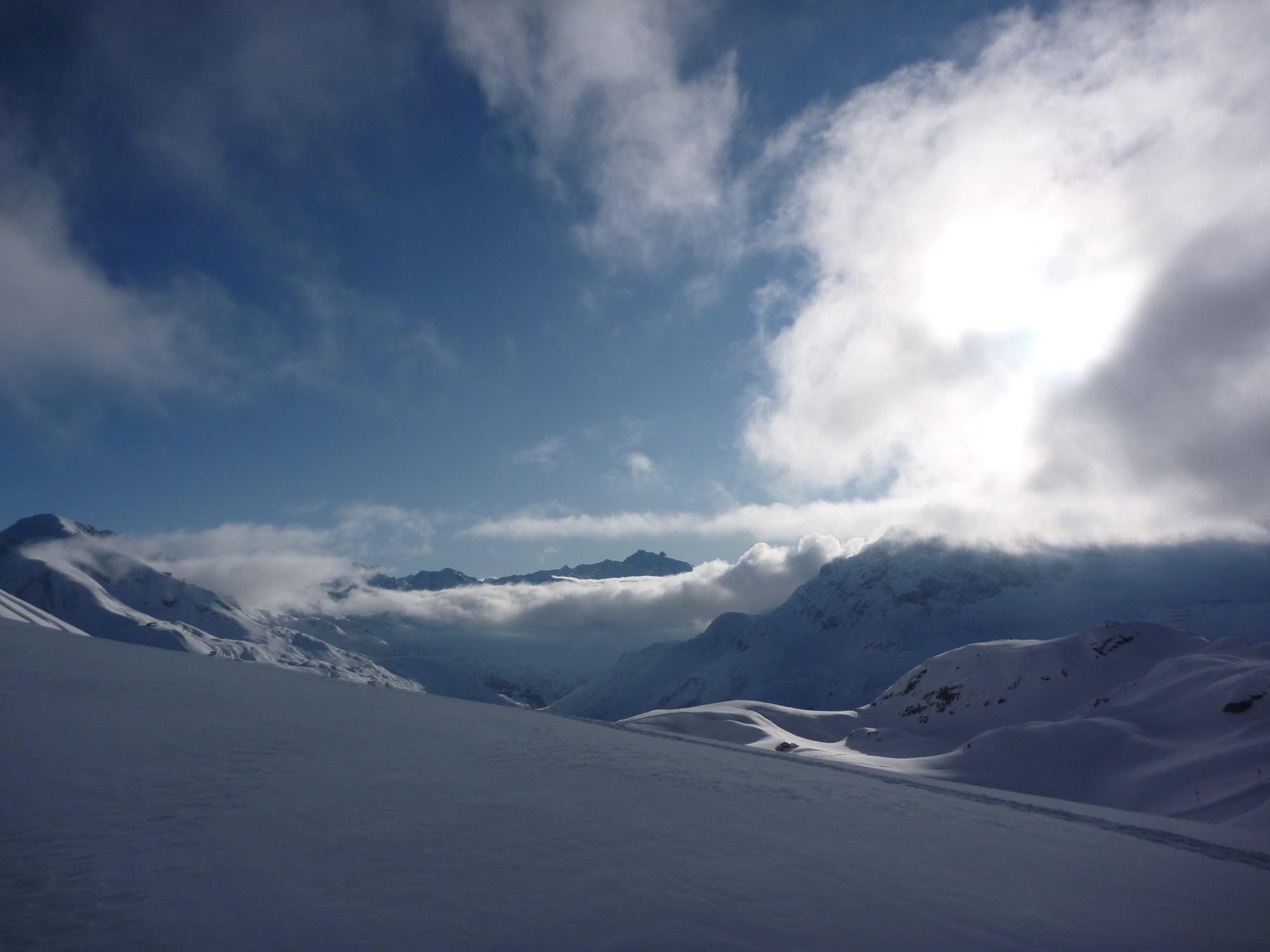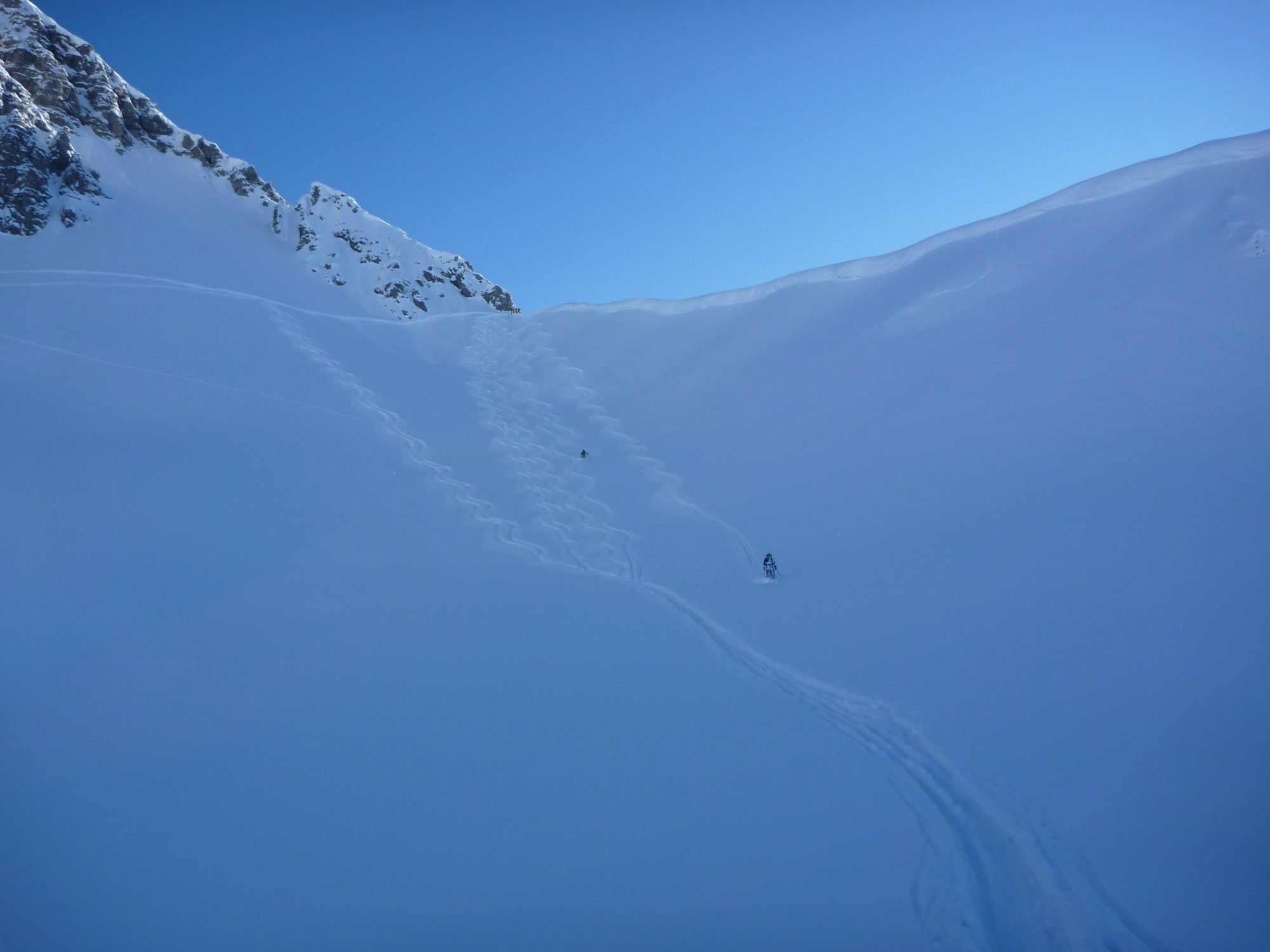 Von der Bergstation der Rüfikopfbahn der Piste Nr. 38 folgen und nach ca. 200 m nach links den Hügel hinauf. Vom Hügel in Richtung Rüfispitze abfahren auf der Bergrücken. Von hier die Ski schultern und ca. 20 min. Von hier nach links in den Hang queren und dann hinunter ins Ochsen Gümple. Vom Ochsen Gümple dann weiter Richtung Wasserfall und weiter auf die Skiroute Langer Zug bis nach Lech zum Schlosskopf-Lift.