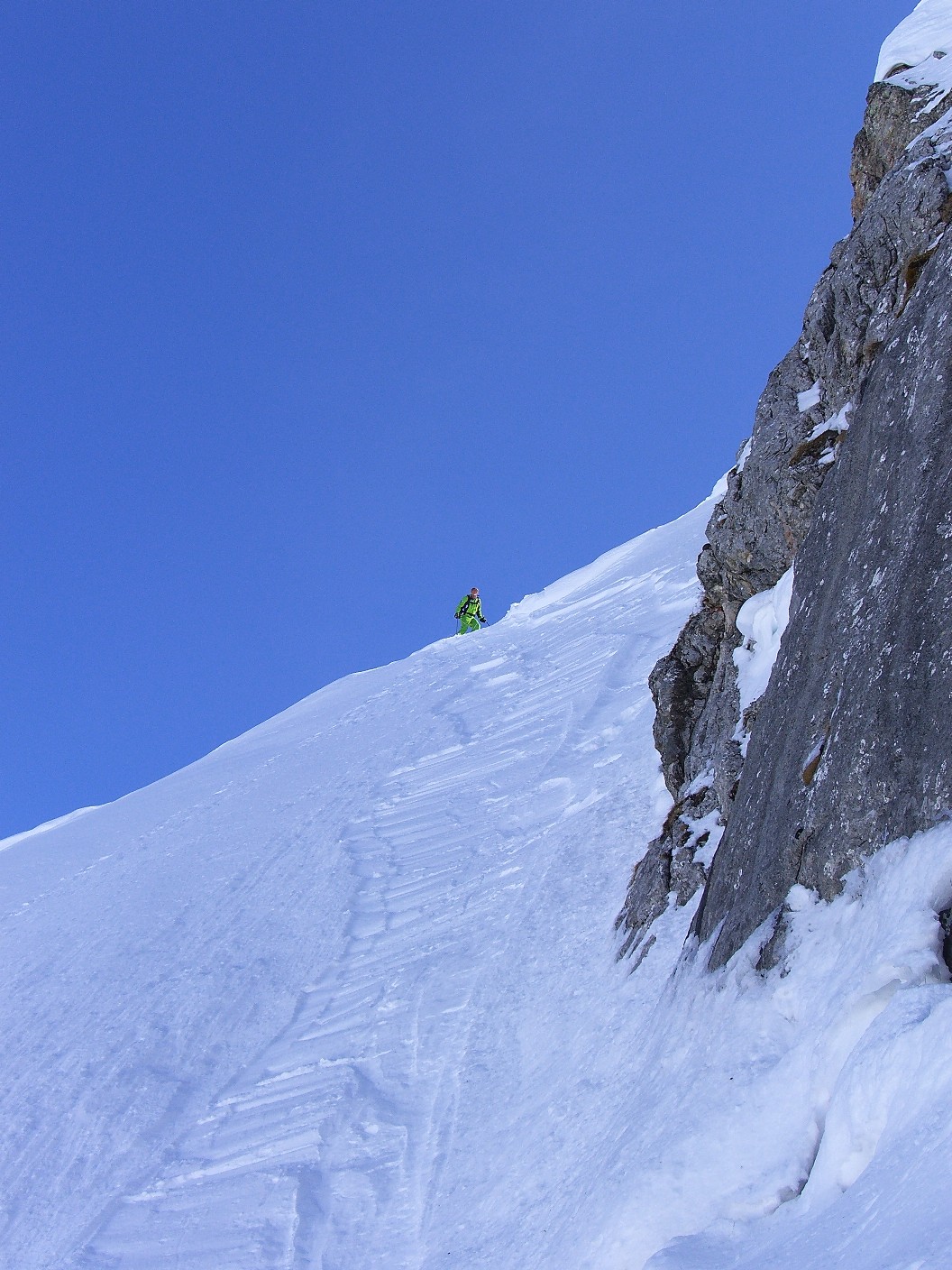 Grant´s Private Place zählt zu den Secret Spots am Arlberg. Ein 50 Höhenmeter und sehr steiler Aufstieg und eine kurze Kletterpassage im Einstieg ist wahrscheinlich nichts für Genussskifahrer.