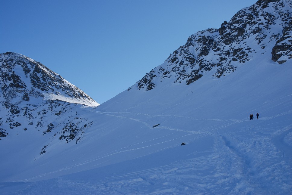 Die Skitour auf die Rossfallscharte ist eine Einsteigertour mit relativ kurzen Aufstieg und einer schönen Abfahrt hinunter ins Malfontal.