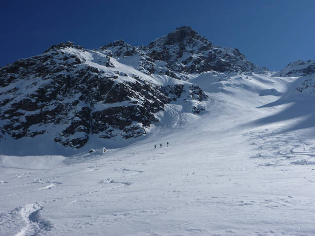 Die Skitour auf die Rossfallscharte ist eine Einsteigertour mit relativ kurzen Aufstieg und einer schönen Abfahrt hinunter ins Malfontal.