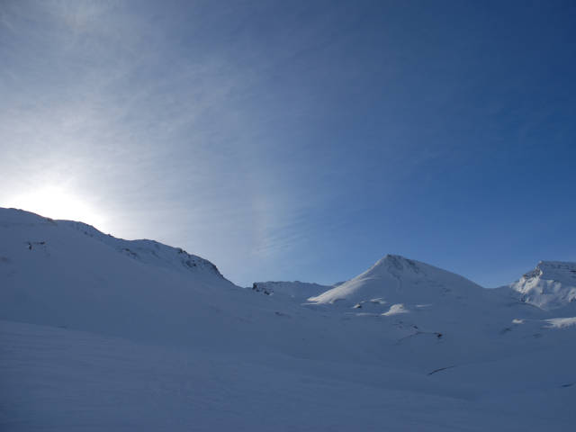 Schöne Frühjahresskitour, oft mit Pulverschnee und Firn in einer Abfahrt. Die Sonntagsspitze ist von der Klostertaler Umwelthütte sehr einfach zu erreichen.