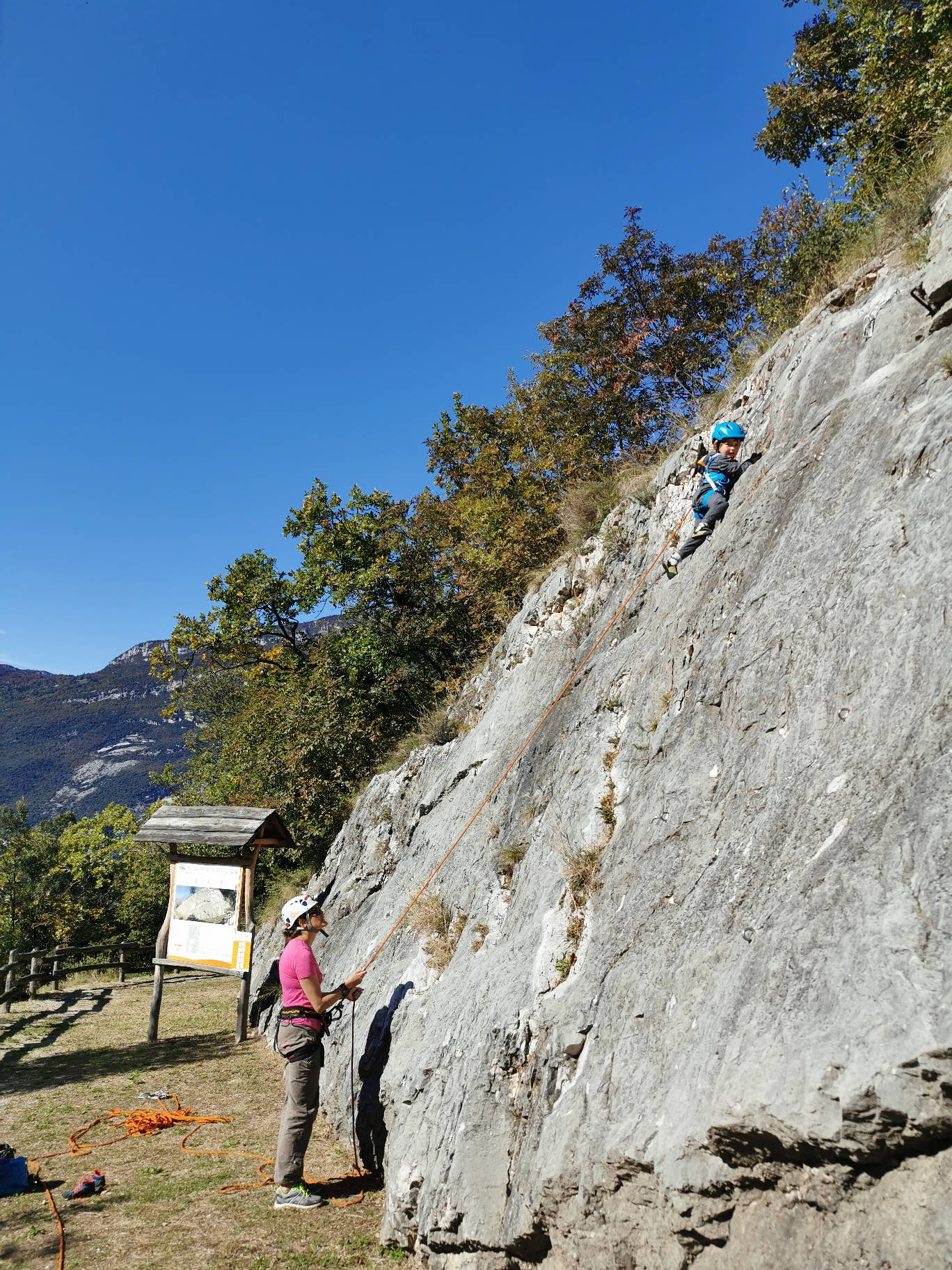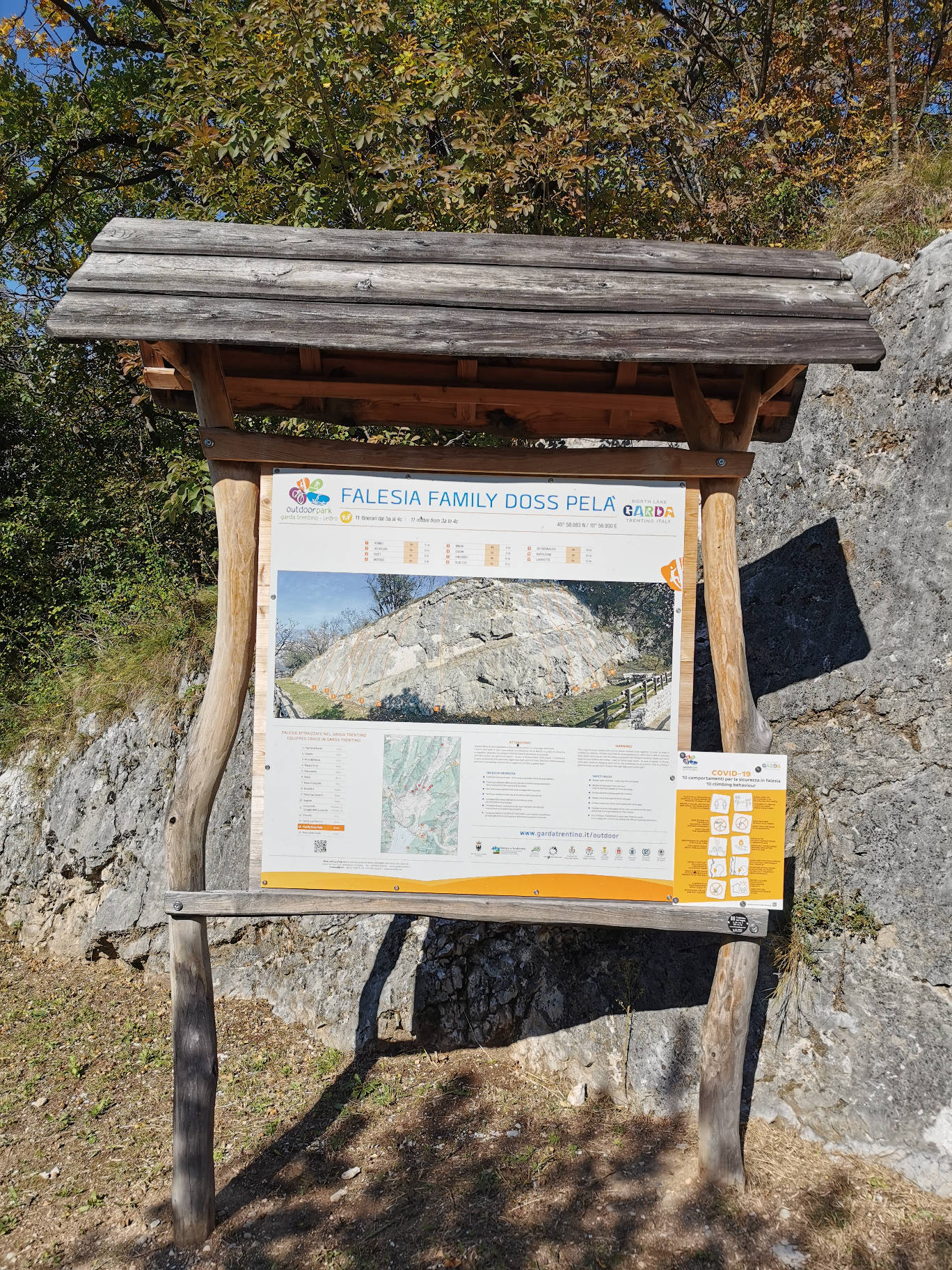 Der Klettergarten Family Doss Pelá in Drena ist ein hervorragendes Klettergebiet für Kinder und Anfänger. Der Zustieg zum Klettergarten ist auch mit Kleinkindern kein Problem. Die 11 Routen von 3a bis 4c sind gut abgesichert. Auch das Gelände um den Klettergarten ist gut eingezäunt und bietet den Kindern genügend Bewegungsfreiraum. Tische und Bänke sind ideal für eine Mahlzeit für die ganze Familie.