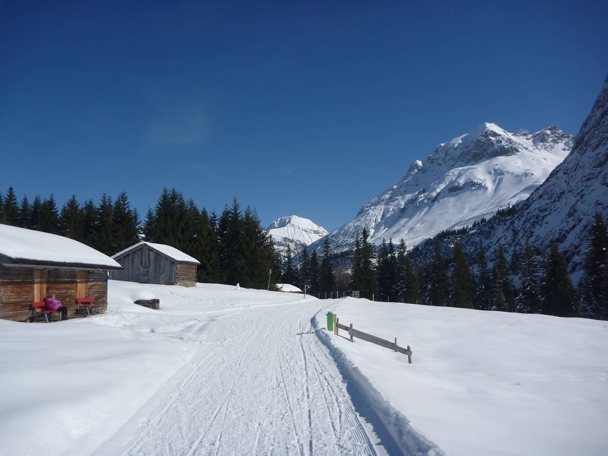 Mit dem Bus fährt man von Lech nach Zug bis zur letzten Haltestelle Klösterle. Jetzt geht es über den präparierten Fußweg etwa 2 km flach bis zum Gasthaus Älpele. Direkt beim Gasthaus geht rechts ein Forstweg hinauf. Dem Forstweg folgen bis zum Oberen Älpele. Rechts am Oberen Älpele vorbei und schon bald ist man über der Baumgrenze. Nach einer kurzen Steigung erreicht man eine Kuppe von wo man einen herrlichen Blick auf die Bergkette (Hochlicht-Spitze, Löffel-Spitze und Braunarlspitze) hat. Über zwei weitere Kuppen bis zum erreichen einer kleinen Ebene, von wo man die Göppinger Hütte in östlicher Richtung gut sehen kann. Von hier sind es noch gute 500 m sehr flach bis zur Göppinger Hütte.