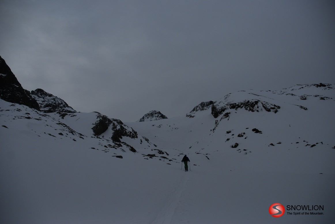 Von der Klostertaler Umwelthütte zunächst in südlicher Richtung und schon bald nach links einen steilen Hang hinauf bis es wieder etwas flacher wird. Die Schneeglocke schon direkt vor den Augen, aber rechts vorbei. Nochmals über eine Steilstufe bis zum Rücken. Über den Rücken und die letzten 50 m die Skier auf den Rücken und bis zum Gipfel. Wenn nicht über die Nordseite abgefahren wird, können die Skier auch unten gelassen werden.