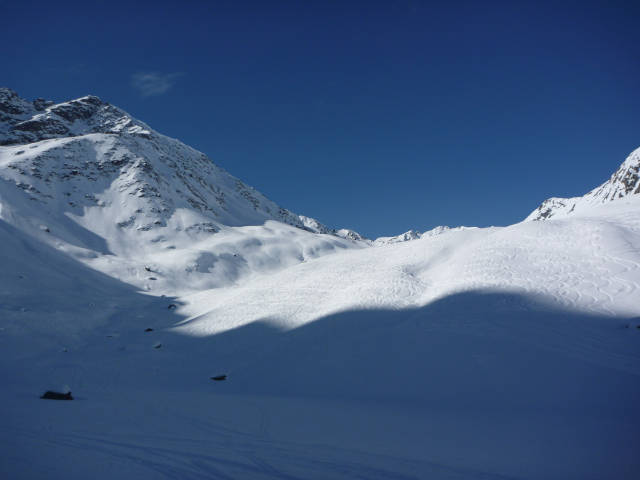 Die Skitour auf die Rossfallscharte ist eine Einsteigertour mit relativ kurzen Aufstieg und einer schönen Abfahrt hinunter ins Malfontal.